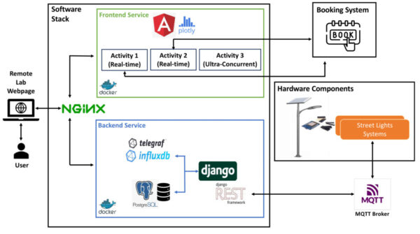 Description: hybrid remote lab combines real-time control and ultra-concurrent analysis to enhance lighting engineering education. Students can: Control a real street light (adjust intensity, capture sensor data, visualize light distribution). Monitor a campus street lighting network to validate compliance with standards. Analyze pre-recorded datasets for different lighting scenarios. Built with ESP32 microcontrollers, MQTT communication, and a web-based interface, the lab connects theory with hands-on practice. Integrated with Book4RLab, it allows easy slot booking for real-time experiments.